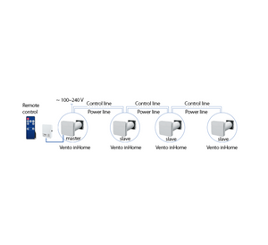 Vento inHome uden WiFi kræver ledningstilkobling mellem enhederne for at operere efter master-slave-princippet. Hvis enhederne ønskes styret individuelt, skal de blot tilsluttes 230 volt fra en nærliggende strømforsyning. Styring kan foretages enten via fjernbetjening eller direkte på enhedens betjeningspanel.